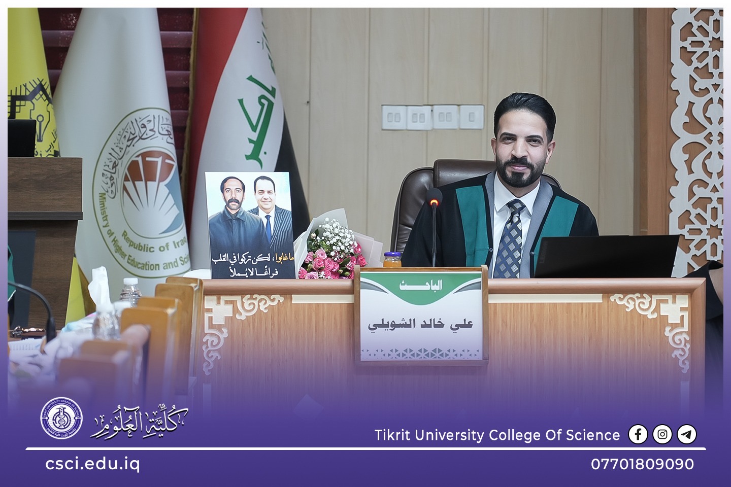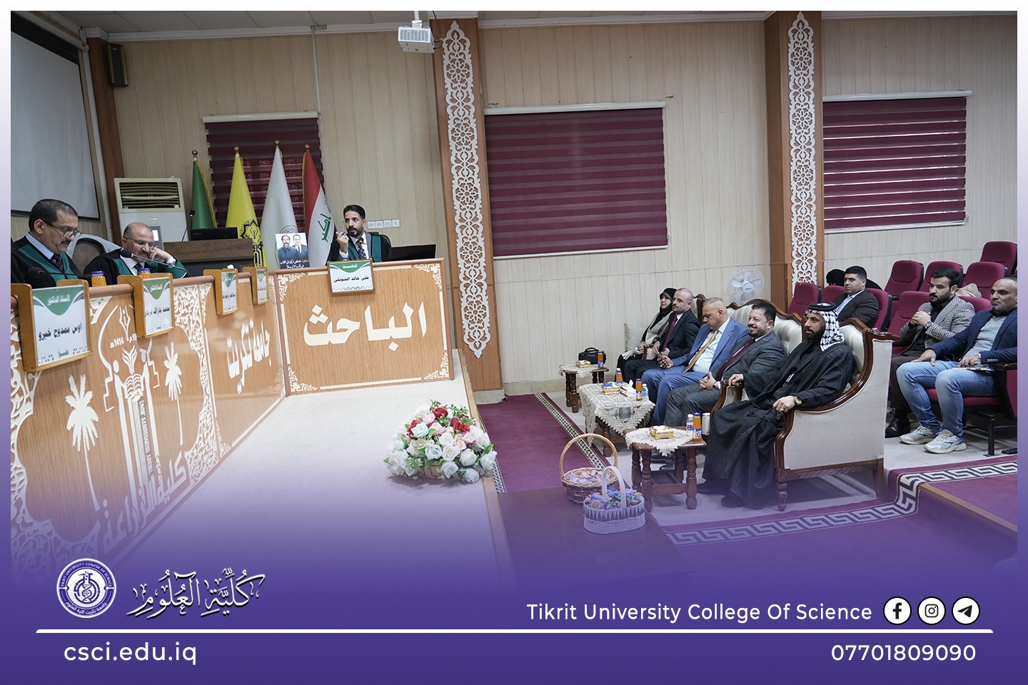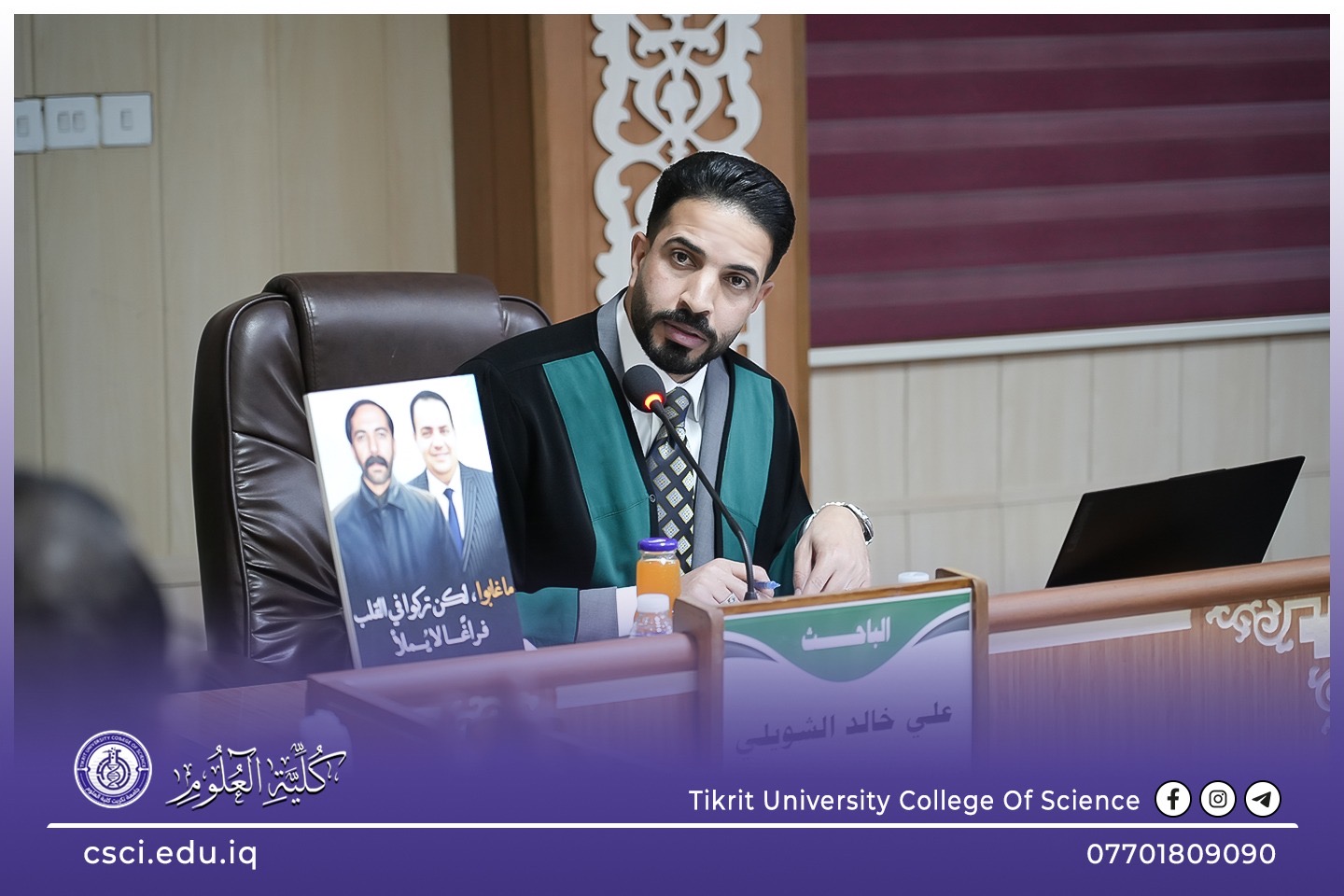 حضر السيد عميد كلية العلوم، الأستاذ الدكتور عبد الخالق علوان محيميد، اليوم، مناقشة أطروحة الدكتوراه للطالب (علي خالد عليوي الشويلي)، والموسومة: