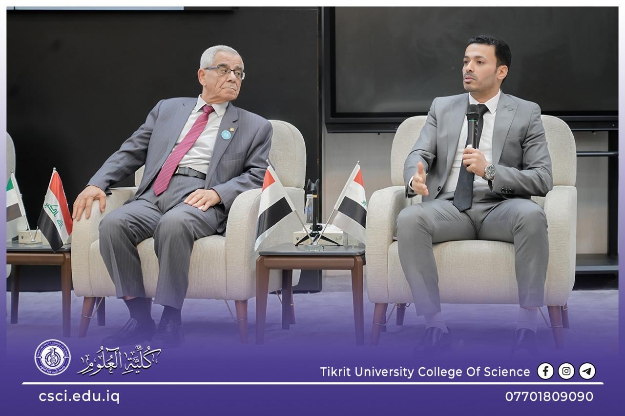 “يسعدني أن أرحّب بكم في رحاب جامعة تكريت، الجامعة التي آمنت منذ تأسيسها بأن العلم رسالة ومسؤولية وبناء. واجهت الجامعة تحديات كبيرة لكنها أثبتت قدرتها على تحويل المعرفة إلى تنمية، والفكرة إلى إنجاز. لقد شهدت الجامعة خلال السنوات الماضية نقلة نوعية في البحث العلمي والتبادل المعرفي والانفتاح الدولي، وأصبحت منصة فاعلة للعلماء والباحثين من داخل العراق وخارجه. كما حققت الجامعة حضورًا متميزًا في التصنيفات العالمية مثل THE وQS العربي وScimago، وازدادت بحوثها المنشورة في مستوعبات Scopus وWeb of Science، مما يعزز موقعها بين الجامعات العالمية.”