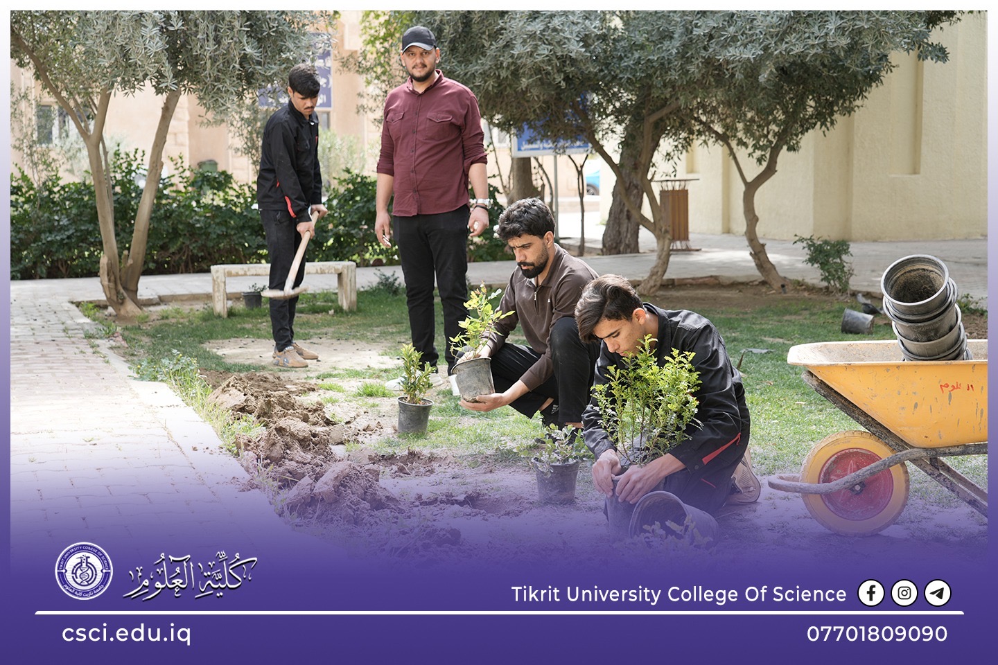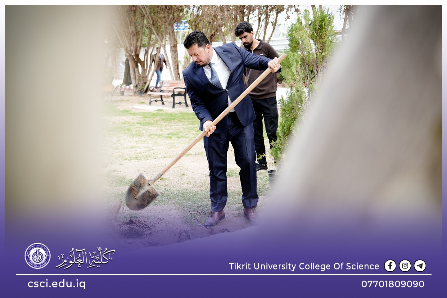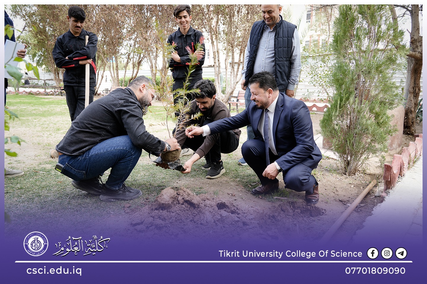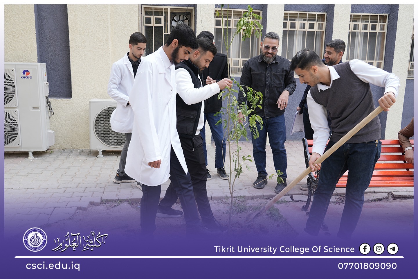 استناداً الى توجيهات رئاسة جامعة تكريت وبأشراف مباشر من الاستاذ الدكتور عبد الخالق علوان محيميد وبمناسبة يوم التشجير الوطني شرعت كلية العلوم اليوم بحملة تشجير واسعة تضمنت زراعة الشتلات والاشجار المختلفة في جميع اروقة وحدائق الكلية لاحياء هذا اليوم ضمن نهج الجامعة في زيادة المساحات الخضراء و الاهتمام بالبيئة وتقليل آثار التصحر.