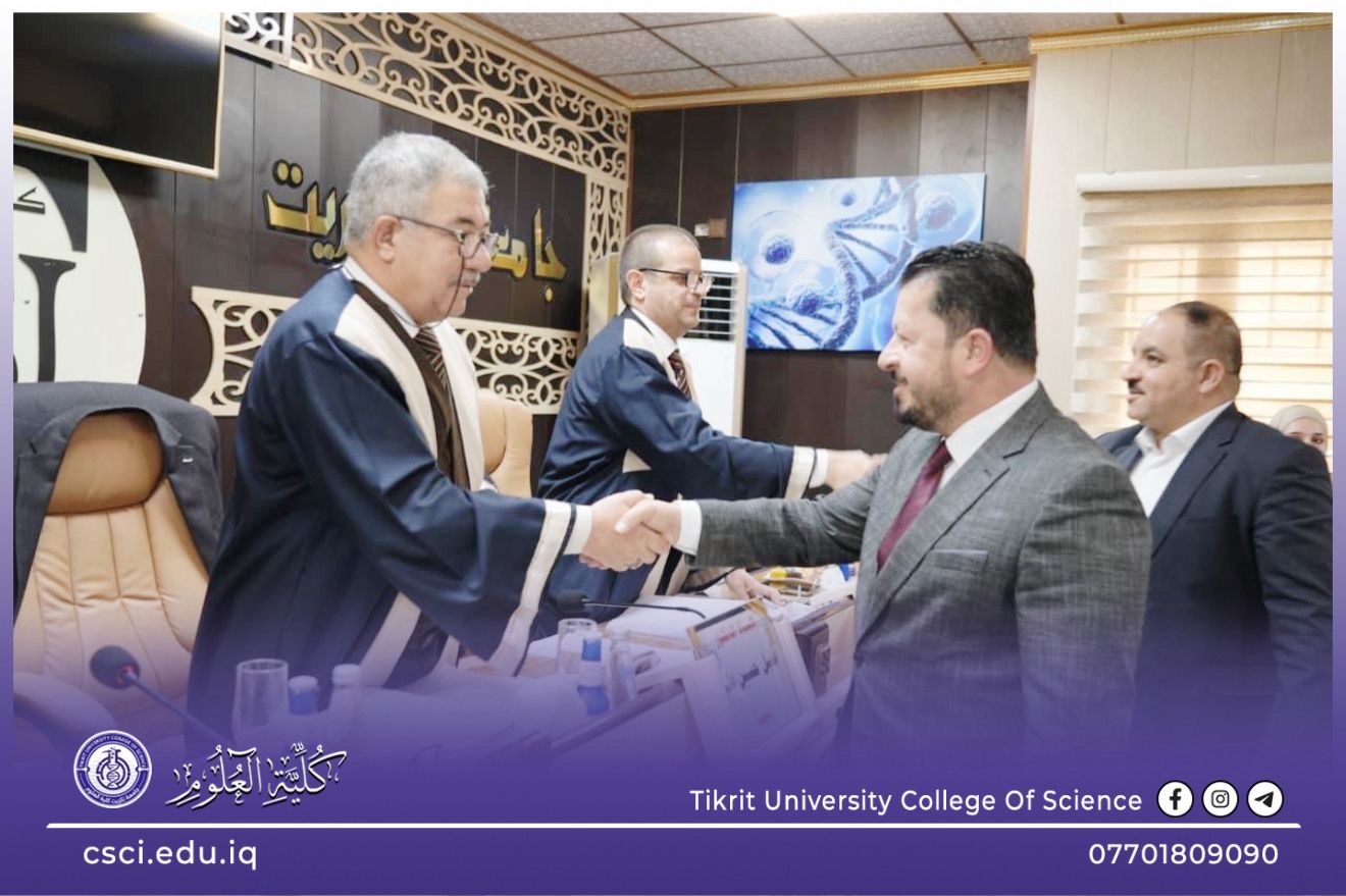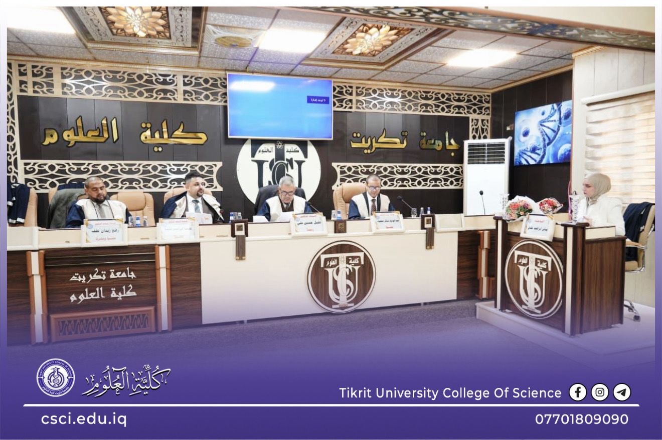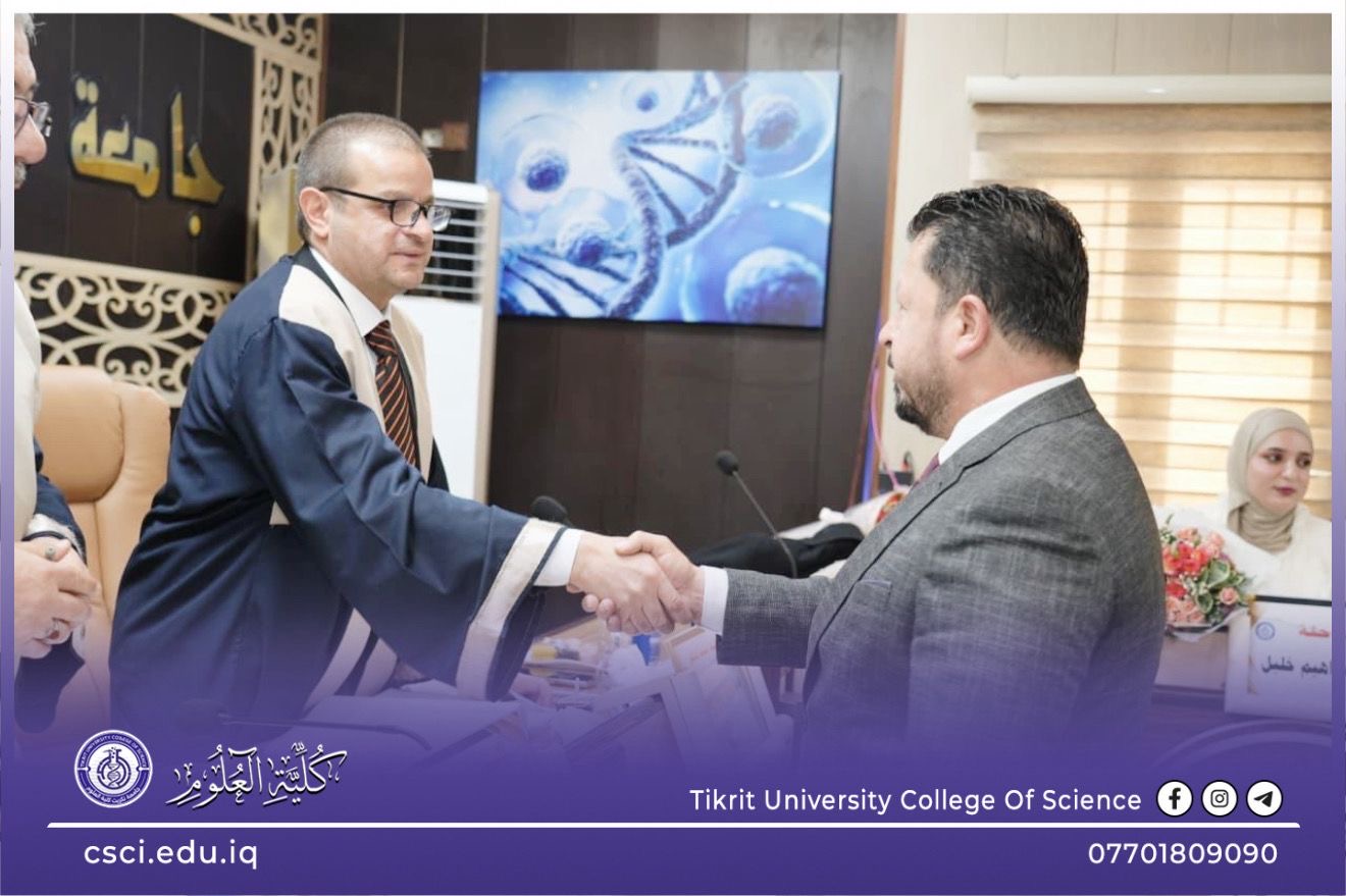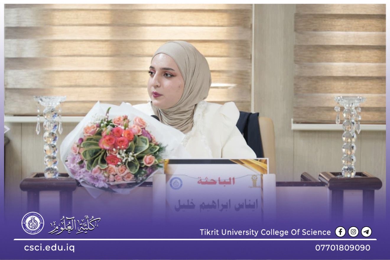 نوقشت في كلية العلوم قسم علوم الحياة رسالة الماجستير (تقدير التعبير الجيني لأعضاء ومراحل عمرية مختلفة للنبات وعلاقتها بنواتج الايض الثانوي) للباحثة (ايناس ابراهيم خليل)