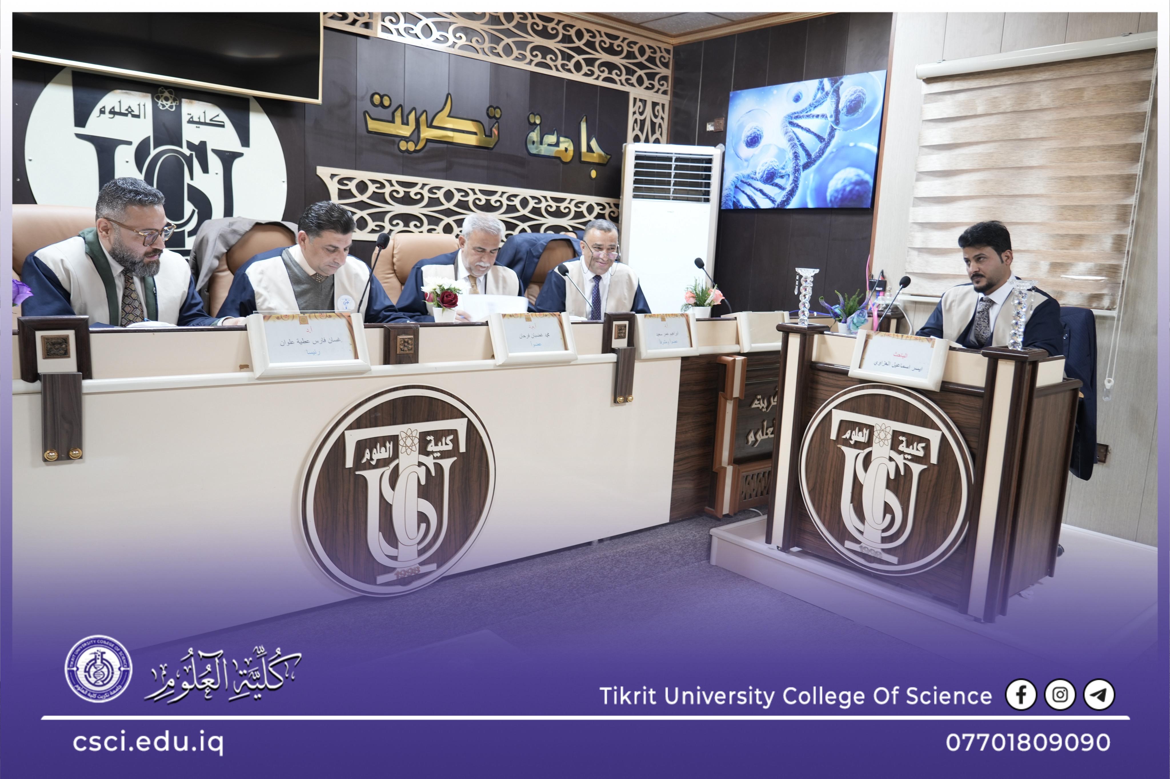 نوقشت في كلية العلوم قسم علوم الحياة رسالة الماجستير (تقييم كفاءة أربع محطات اسالة لتصفية مياه الشربفي قضاء العلم) للباحث (ايسر اسماعيل محمد)