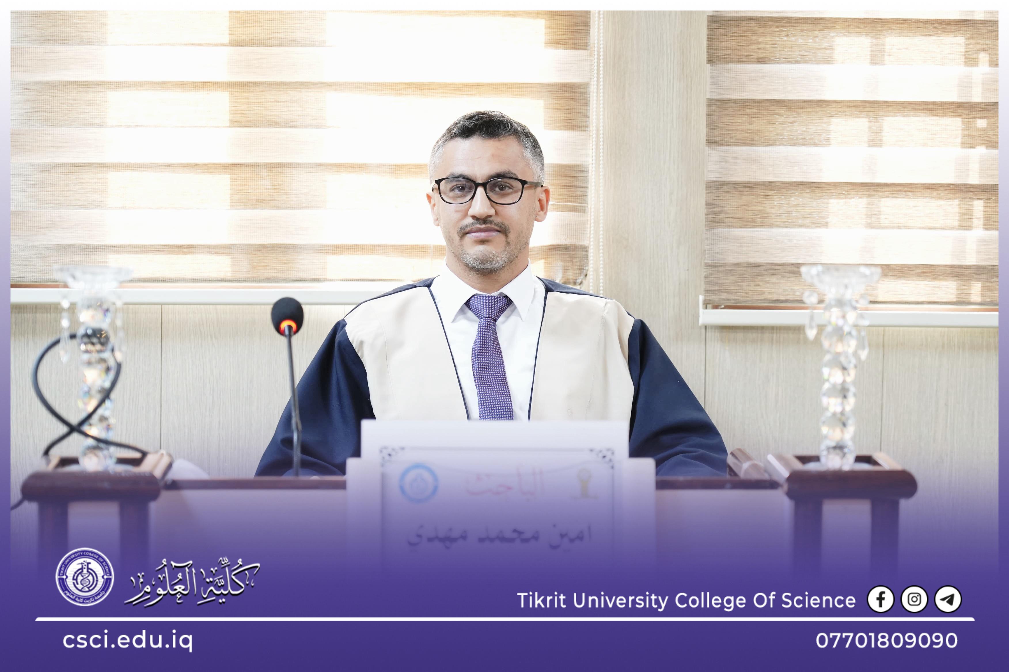 نوقشت في كلية العلوم قسم الكيمياء اطروحة الدكتوراه (دراسة كيميائية وحيوية لمرضى الفشل الكلوي وسوائل الغسيل الدموي لمركز الديلزةفي محافظة كركوك) للباحث (امين محمد مهدي)
