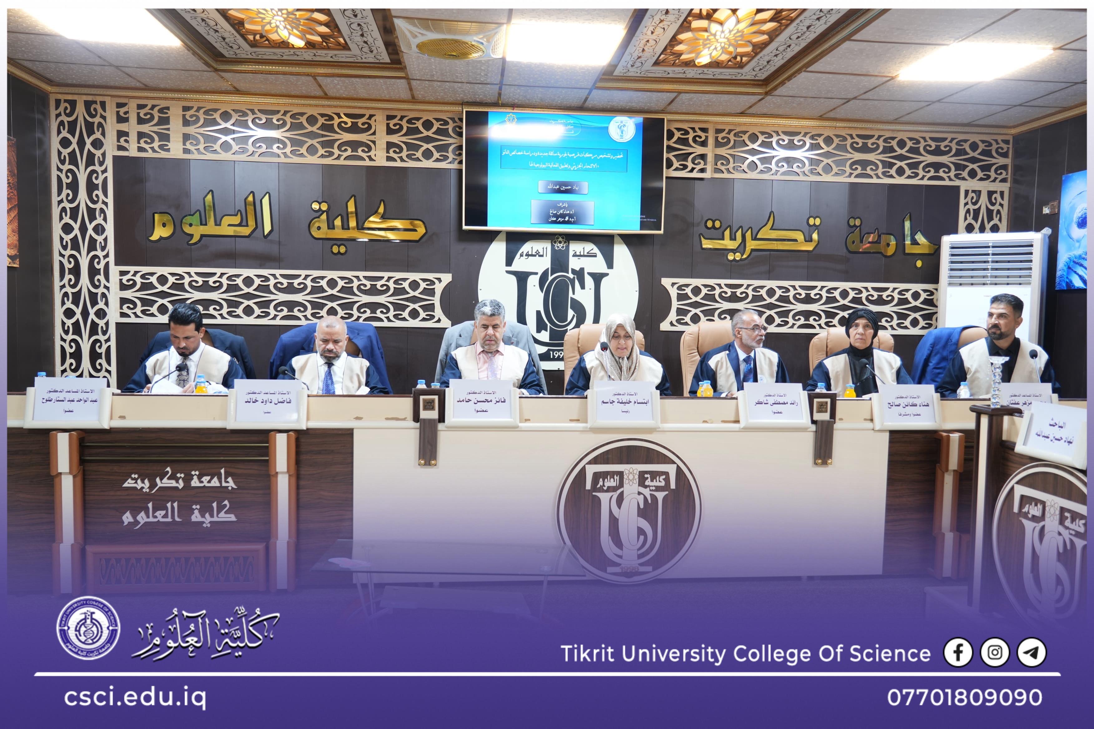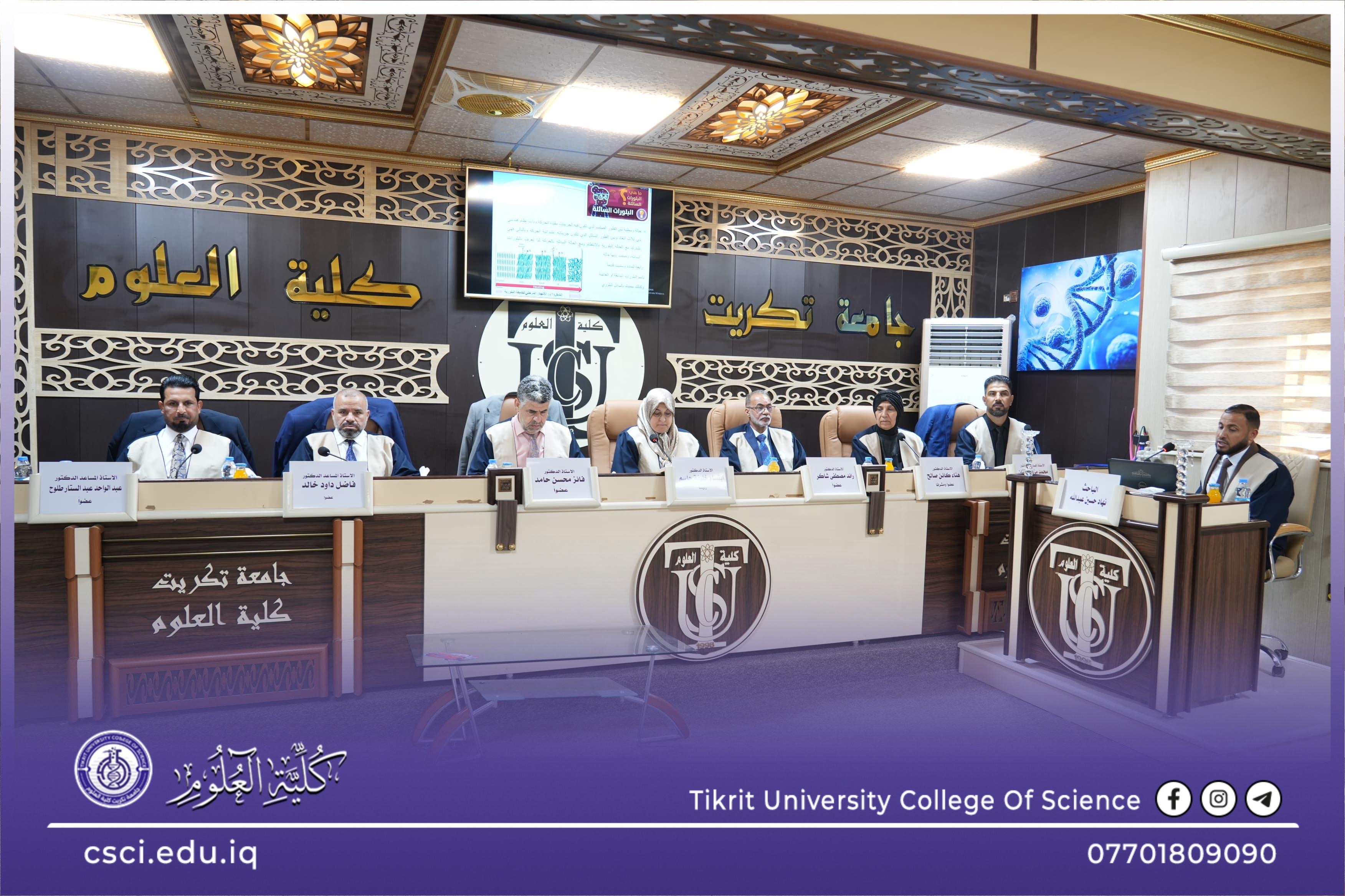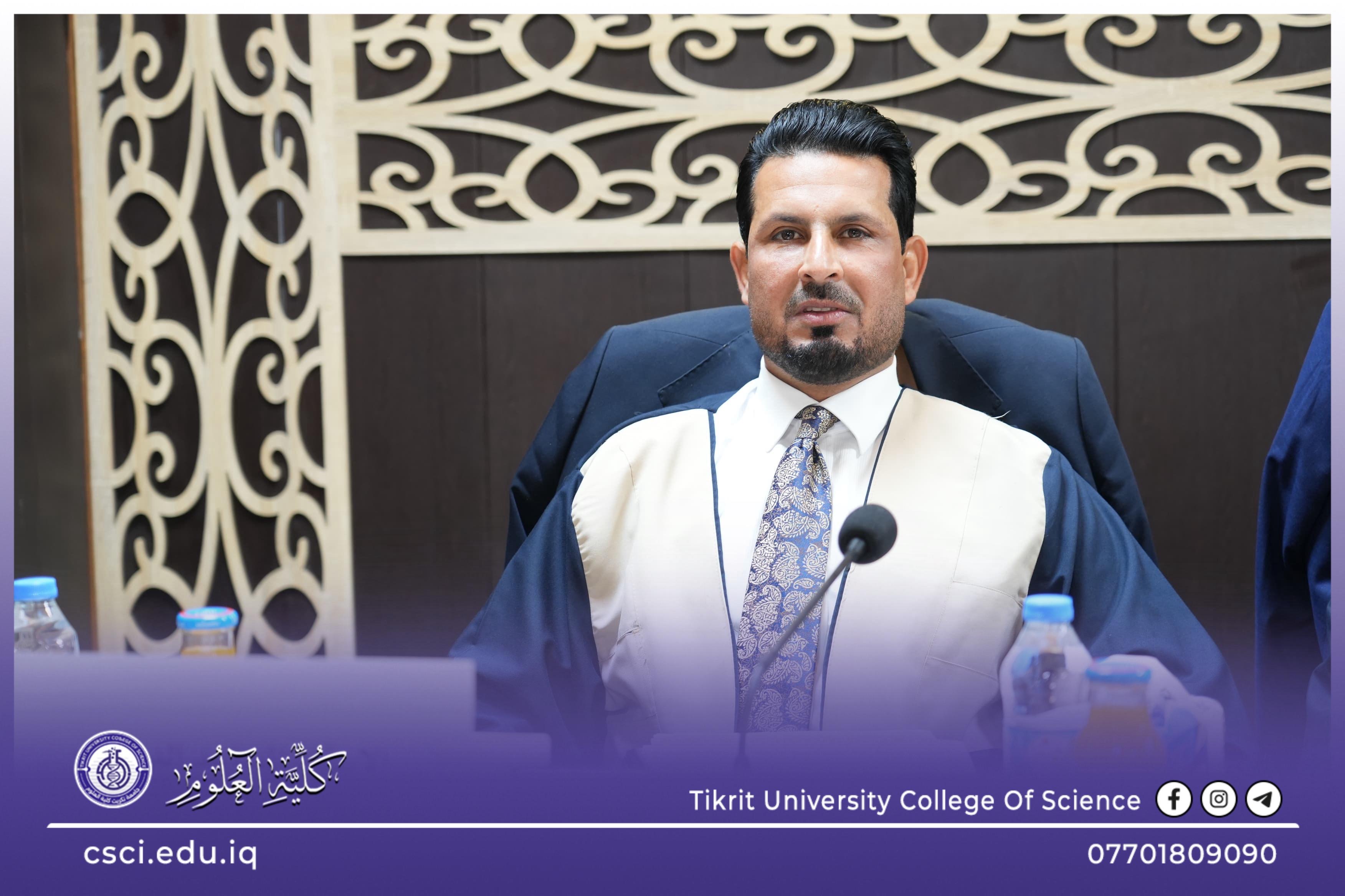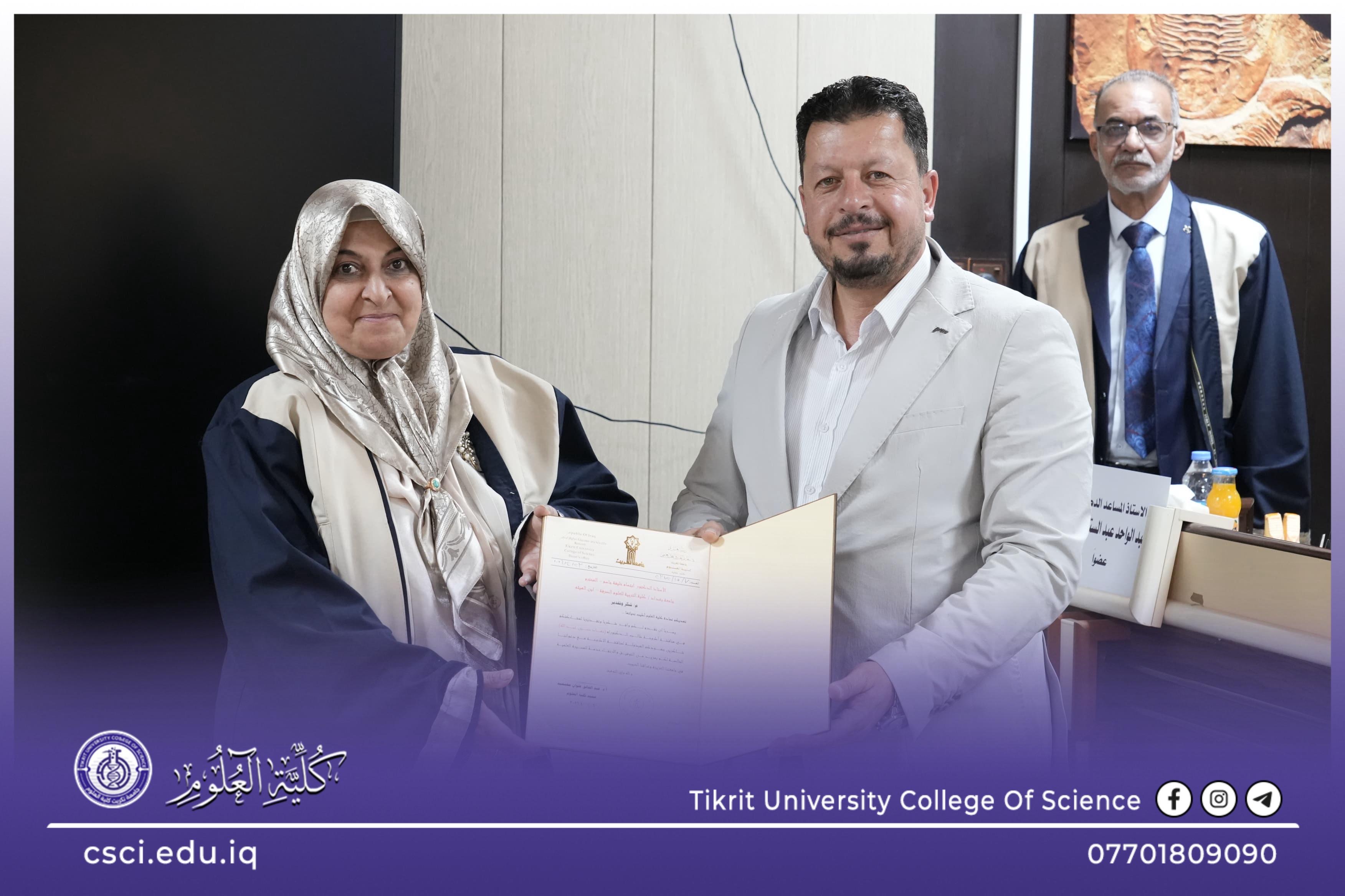 نجح الباحث "نهاد حسين عبدالله العوين"، الطالب في قسم الكيمياء بكلية العلوم بجامعة تكريت، في نيل درجة الدكتوراه بتقدير عالٍ عن أطروحته الموسومة: "تحضير وتشخيص مركبات قرصية بلورية سائلة جديدة، دراسة خصائص النانو، الالتحام الجزيئي وتطبيق الفعالية البيولوجية لها