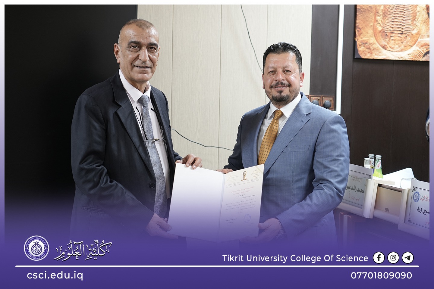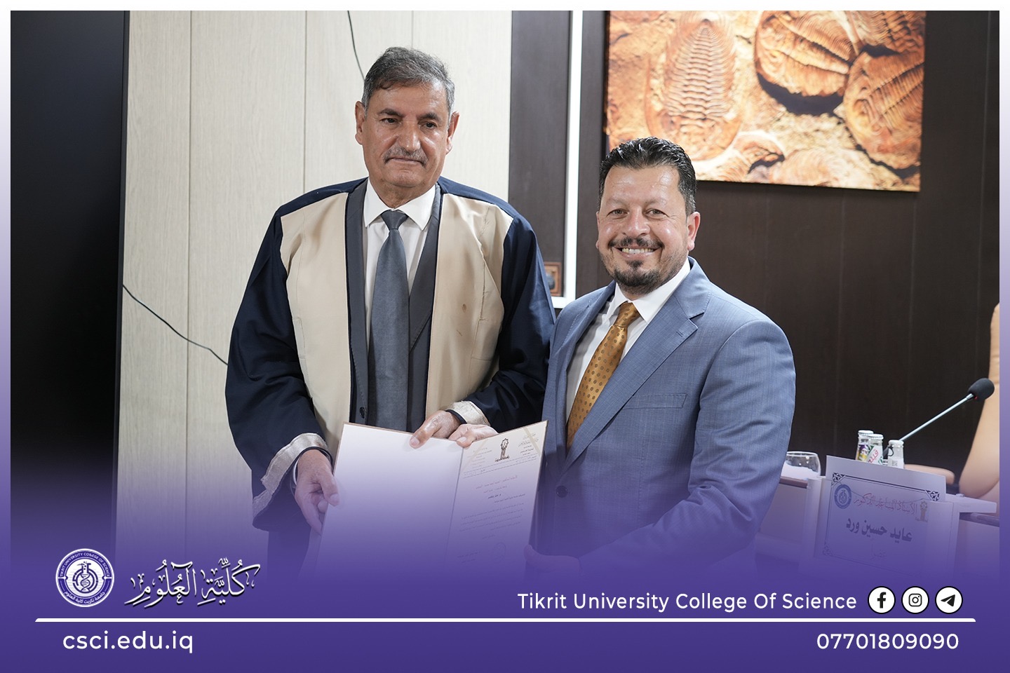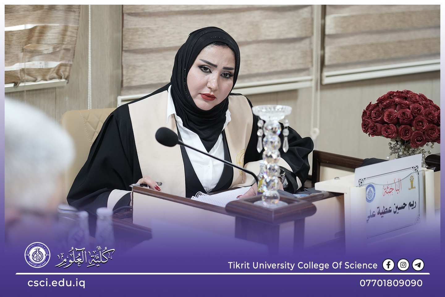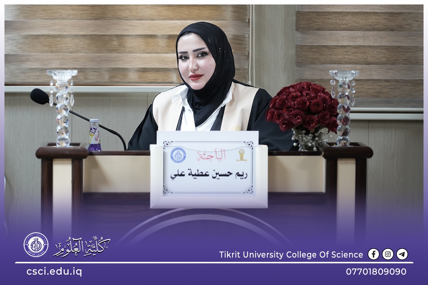 نوقشت في كلية العلوم قسم علوم الارض التطبيقية اطروحة الدكتوراه (بناء موديل تركيبي طباقي لتتابعات العصر الكريتاسي لحقل خباز النفطي/ شمال العراق) للباحثة (ريم حسين عطية)