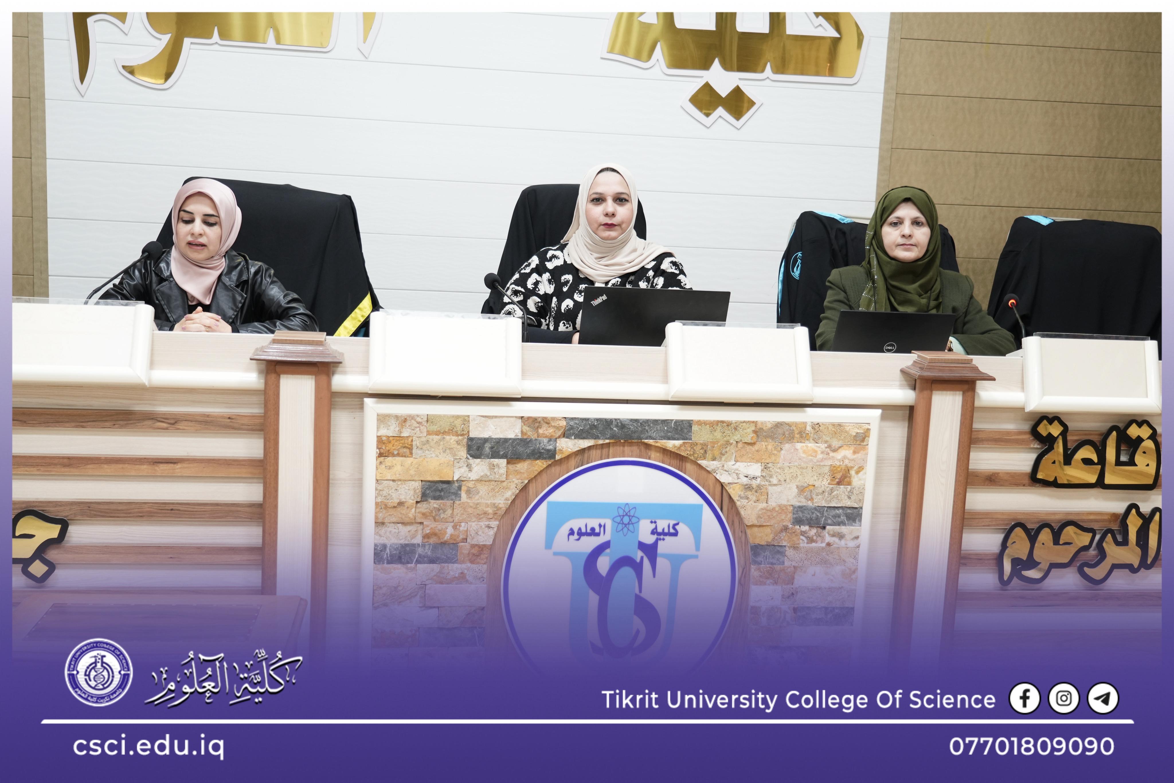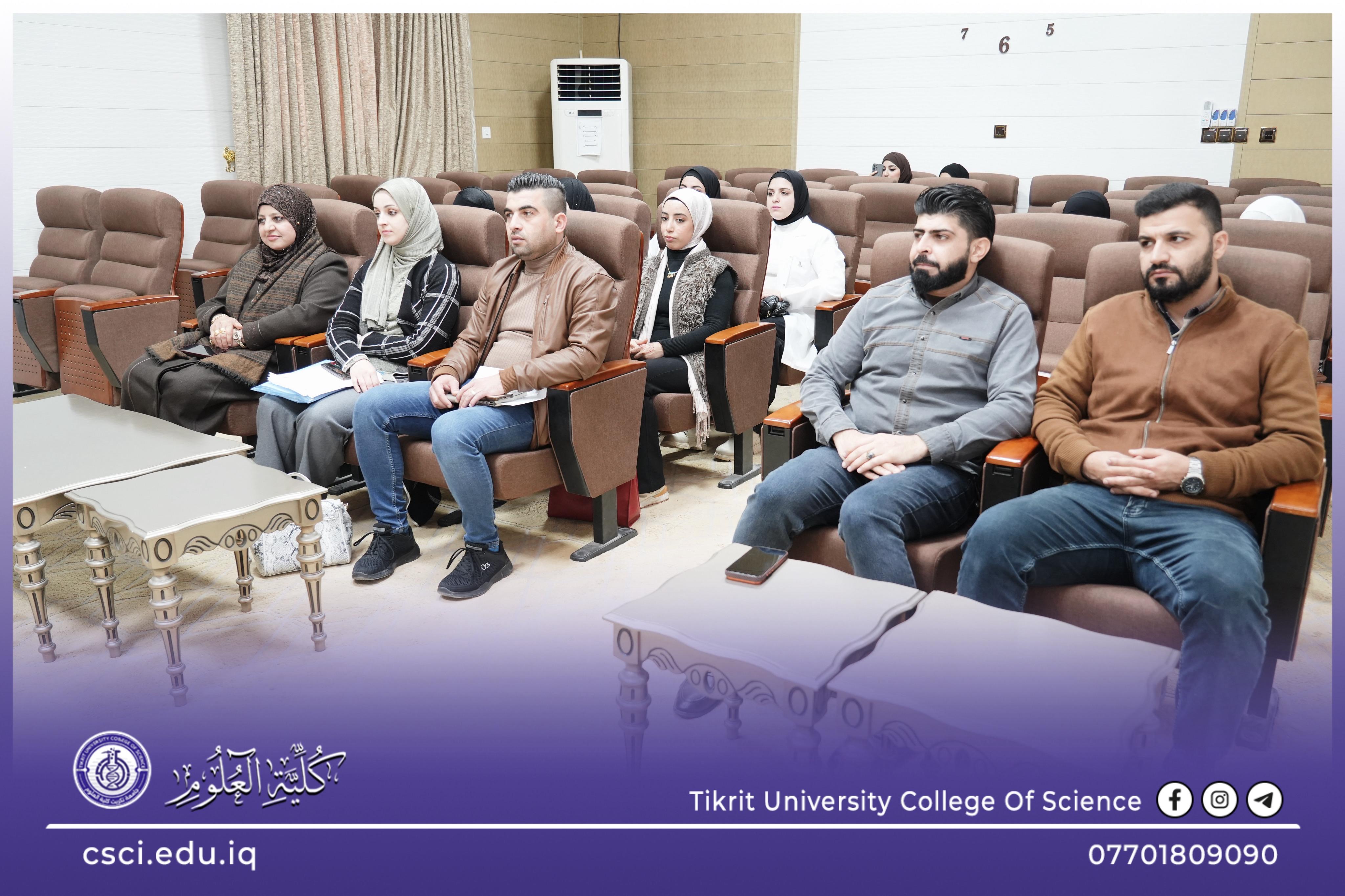 برعاية السيد رئيس جامعة تكريت، الأستاذ الدكتور وعد محمود رؤوف المحترم، وبإشراف مباشر من السيد عميد كلية العلوم، الأستاذ الدكتور عبد الخالق علوان محيميد، والسيد مدير مركز التعليم المستمر، الأستاذ المساعد الدكتور سياف عبد حسين.