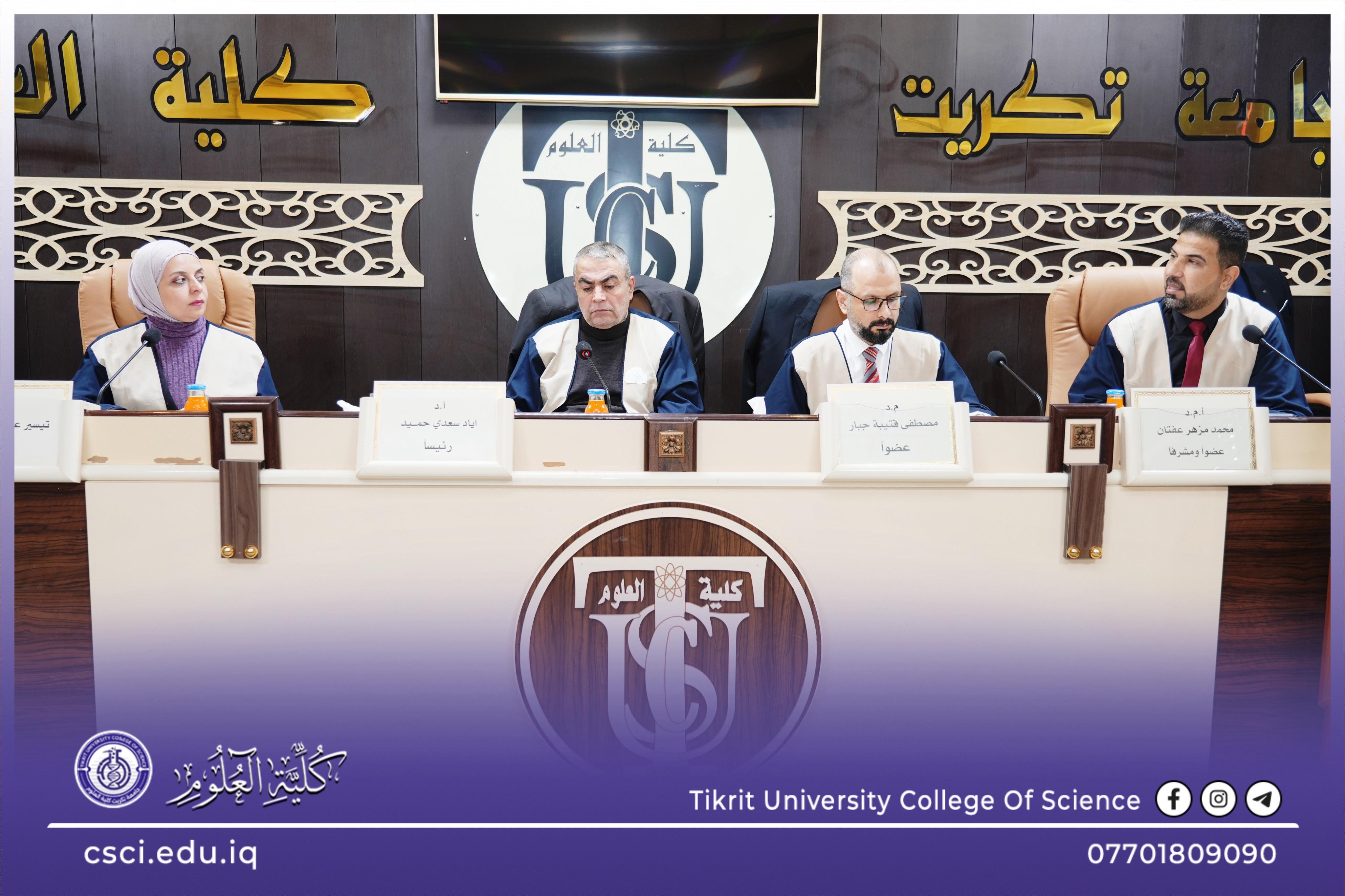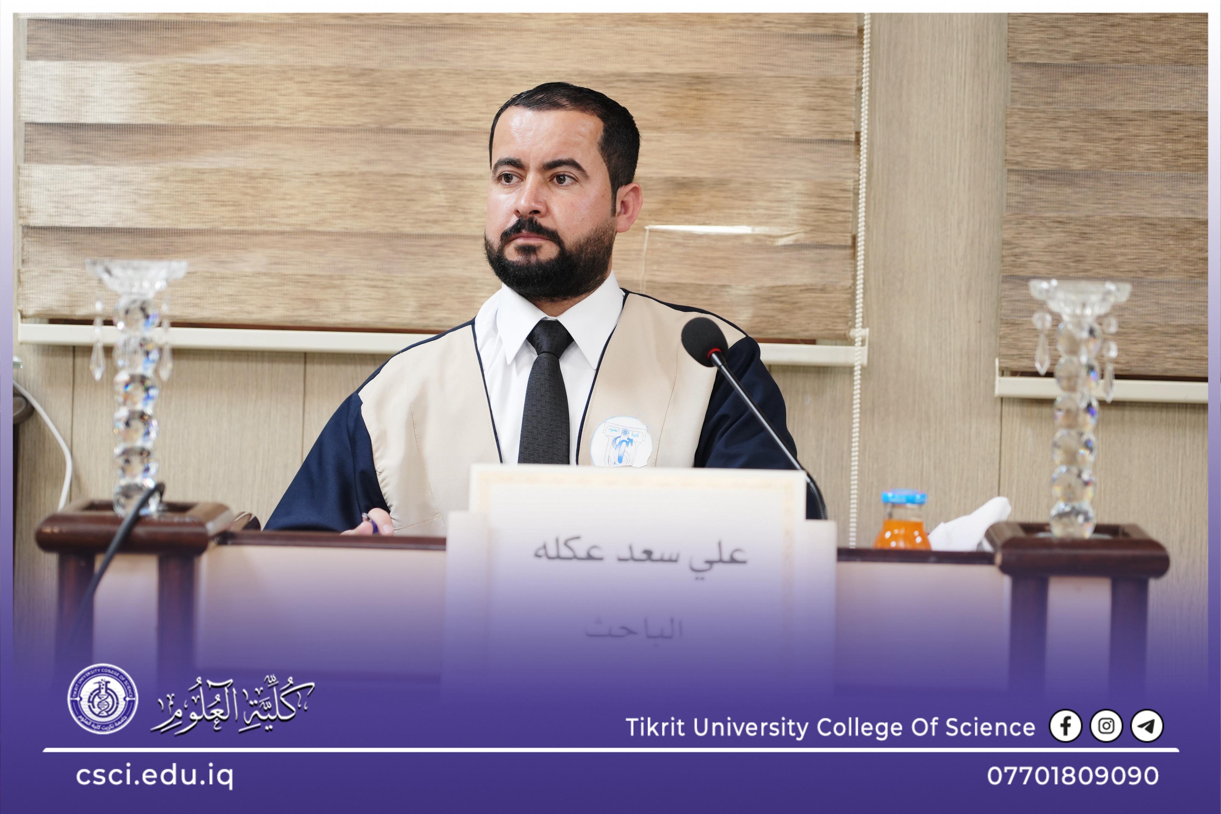 نوقشت في كلية العلوم قسم الكيمياء رسالة الماجستير (تحضير متراكبات بلورية سائلة جديدة وتطبيقها بعمود كرموتوغرافيا لازالة المعادن من الصرف الصحي) للباحث (علي سعد عكله)